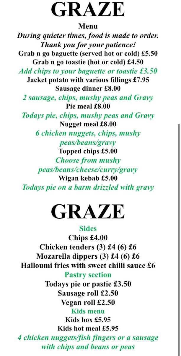 Welcome to Graze at Haigh, a charming café nestled in the heart of Woodland Park in Haigh, Wigan. This delightful spot offers a variety of menu options that cater to all tastes, making it a perfect pitstop for families, dog owners, or anyone looking to unwind after a stroll in the park.